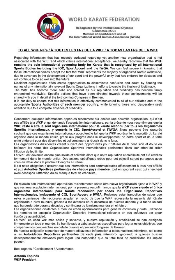 Notificación: Nota importante de la WKF