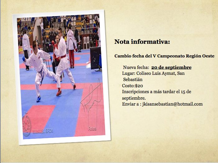 Noticias FEPUKA: V Campeonato Región Oeste (nueva fecha)