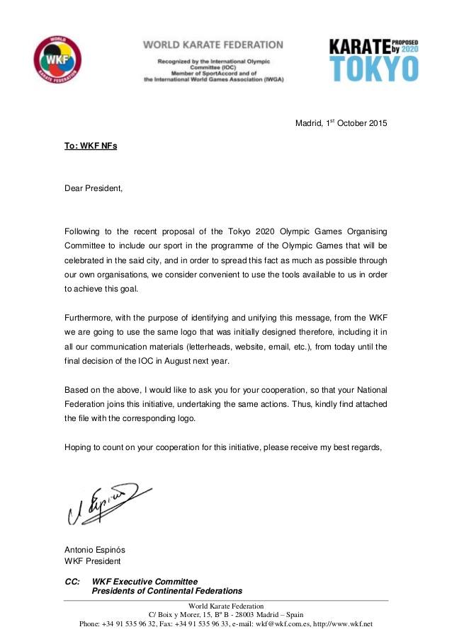 Carta del Sr.Presidente de la WKF Antonio Espinós
