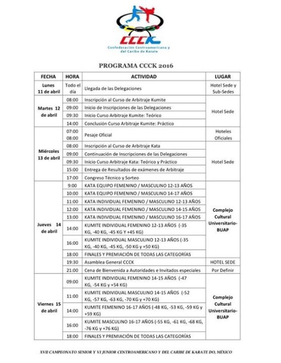 Calendario CCCK 2016- Puebla, México