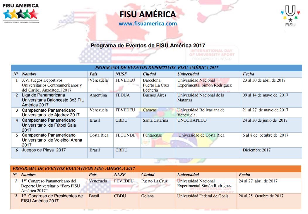 Calendario Federación Internacional de Deportes Universitario FISU América 2017