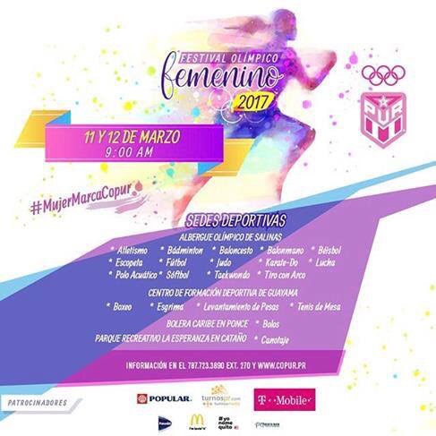 Festival Olímpico Femenino! 11 y 12 de marzo en el albergue olímpico de Puerto Rico. ¡Entrada libre de costo!