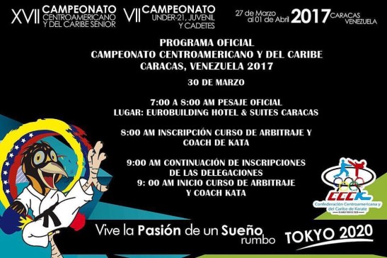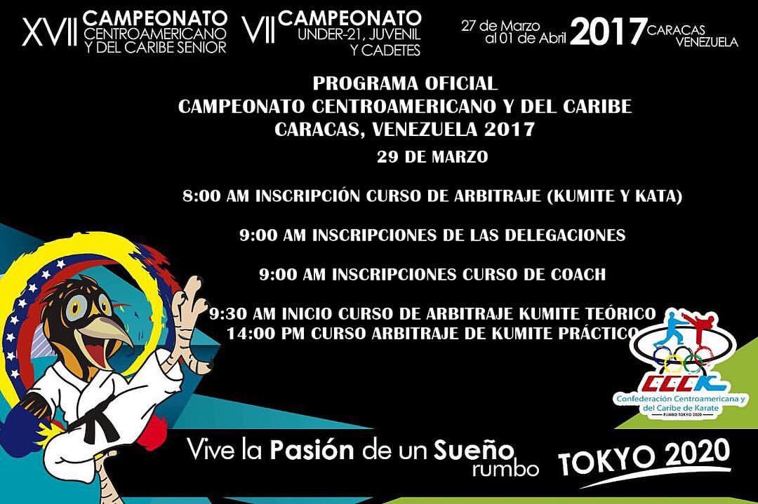 Campeonato Centroamericano y del Caribe de Karate 2017, Caracas, Venezuela: Programa oficial