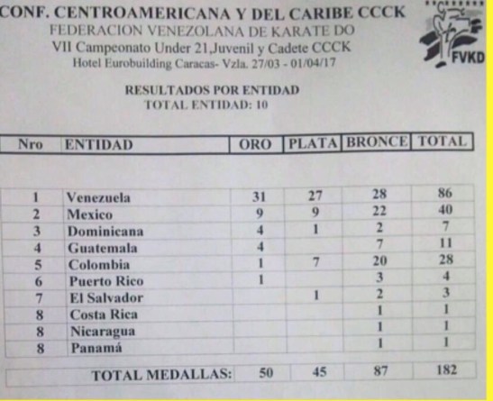 CCCK 2017 Caracas, Venezuela : Medallero final por países