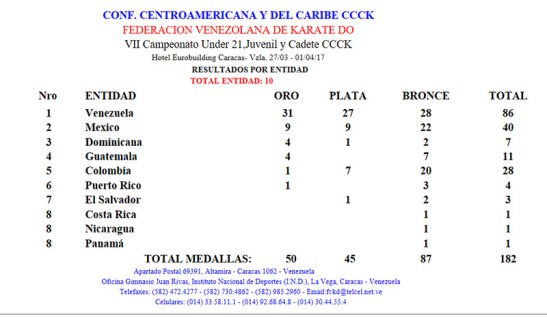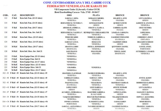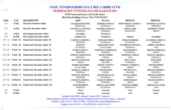 Resultados del Campeonato Centroamericano y del Caribe CCCK Caracas , Venezuela 2017