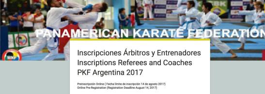 Para su información, el registro de árbitros y entrenadores para el próximo Campamento Panamericano de Karate Buenos Aires 2017 está disponible en la página oficial de la Federación Panamericana de Karate (www.pkfkarate.com) o en el siguiente enlace electrónico: https://goo.gl/forms/FswbBTlQTOP3CGjI2
