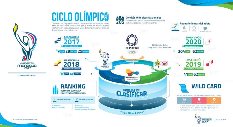 Para toda la región Centroamericana el Ciclo Olímpico está constituido por los Juegos Deportivos Centroamericanos, Juegos Deportivos Centroamericanos y del Caribe, los Juegos Deportivos Panamericanos, hasta culminar con los Juegos Olímpicos de Verano.