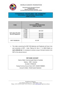 Encuentre en el anexo los Honorarios y Condiciones de la WKF 2018, así como los precios de los Dan Diplomas y los pasaportes de la WKF que entrarán en vigencia a partir del 1 de enero de 2018.