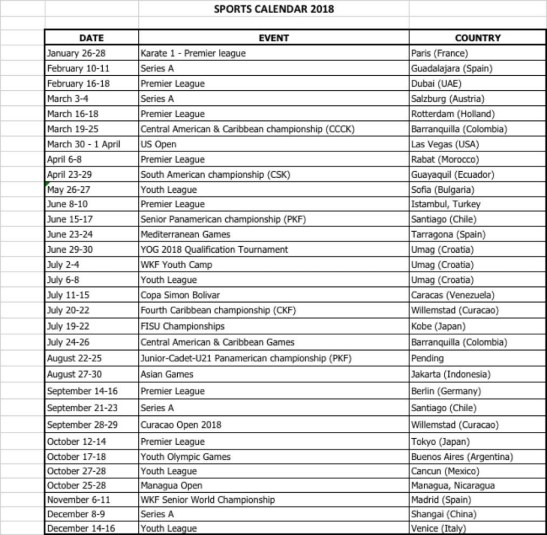 Calendario Deportivo PKF 2018