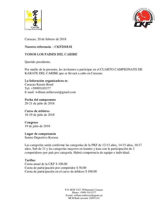 CUARTO CAMPEONATO DE KARATE DEL CARIBE – Curazao 2018