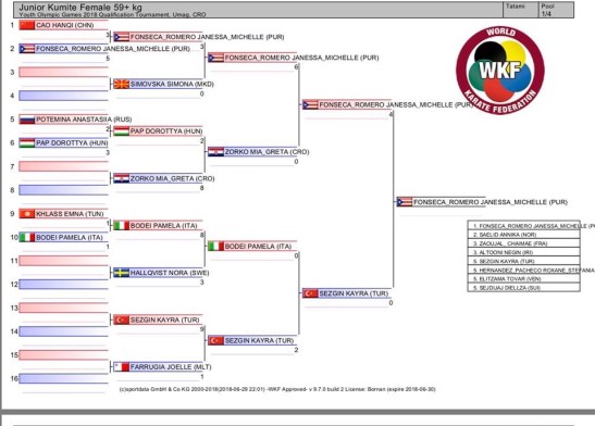 La FEPUKA se congratula de anunciar la clasificación para los Juegos Olímpicos de la Juventud que se celebrarán en Buenos Aires en octubre de 2018 de nuestra atleta Janessa Fonseca , Janessa ganó sus dos combates finales con absoluta autoridad , felicitamos a Janessa Fonseca y a su técnico Ricardo Rivera