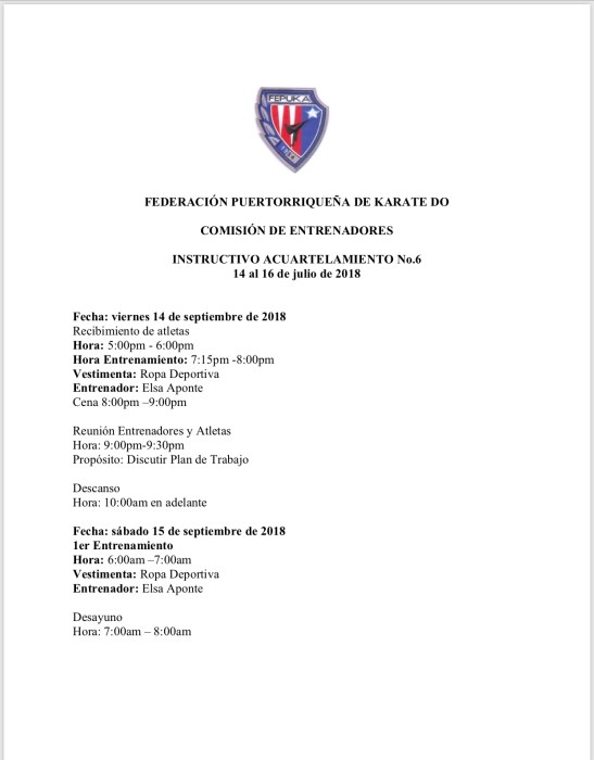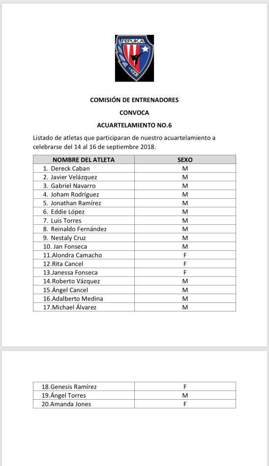 Se adjunta instructivo y lista de convocados para el acuartelamiento FEPUKA