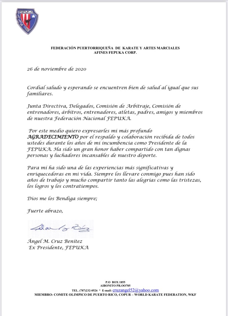 > El nov. 26, 2020, a la(s) 6:10 p. m., Federación Puertorriqueña de Karate y Artes Marciales Asoc (FEPUKA) escribió: > > >