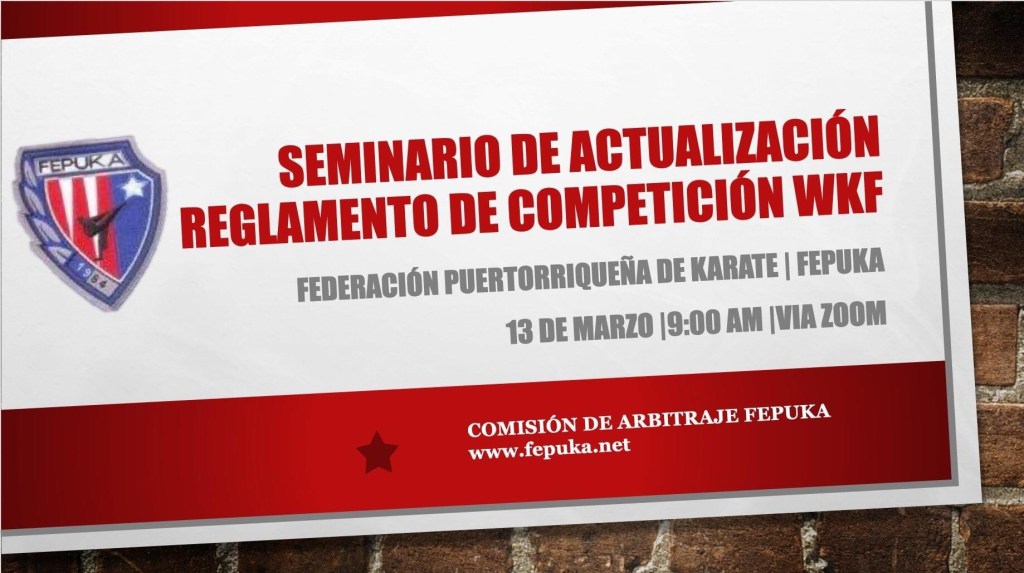 El próximo sábado 13 de marzo se estará realizando vía zoom el seminario de actualización del reglamento de competición WKF entre otros temas.