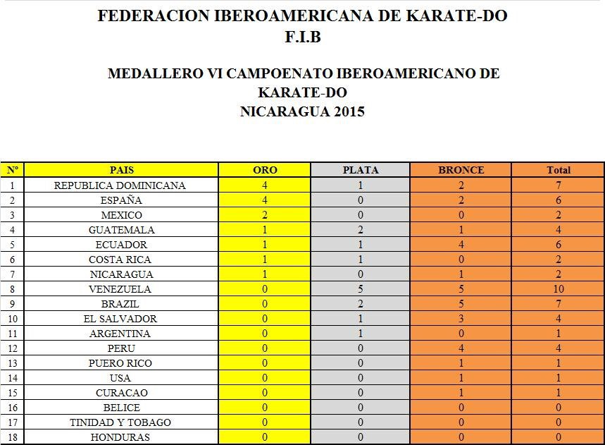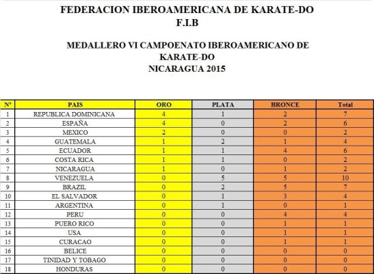 Medallero por países Iberoamericano 2015